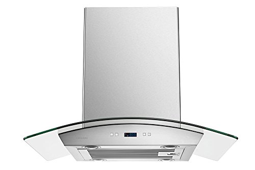 With its clear glass and sleek stainless steel design, the Cavaliere 30W in. Tempered Glass Canopy Island Range Hood makes your kitchen island stylish and smart. A sleek way to clean the smoke and odor from your kitchen, this range hood has a slim profile and is made of 19-gauge brushed stainless steel with a curved, tempered glass top. It offers a quiet centrifugal motor that makes quick work of clearing the air. Six speeds, dishwasher-safe filters, and four dimmable LED lights make it practical. The dual touch sensitive keypad, 30-hour cleaning reminder, and delayed power auto shut off make it a snap to use. Additional Information: 6 speeds with timer function, Dual touch sensitive keypads, Dishwasher-safe stainless steel baffle filters, Airflow: 900 CFM, 4 dimmable LED lights. About Cavaliere: Cavaliere offers a complete stainless steel range hood collection. They blend superior components with the latest technologies to create range hoods that cater to your needs. Cavaliere has a special understanding of the kitchen environment, ergonomics, aesthetics, and integration within your home or workplace. They specialize in wall-mounted, island, or under cabinet range hoods that make a statement in your kitchen.