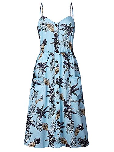 ECHOINE Women Sling Blue Pineapple Floral Beach Dress Sleeveless Slim Waist
