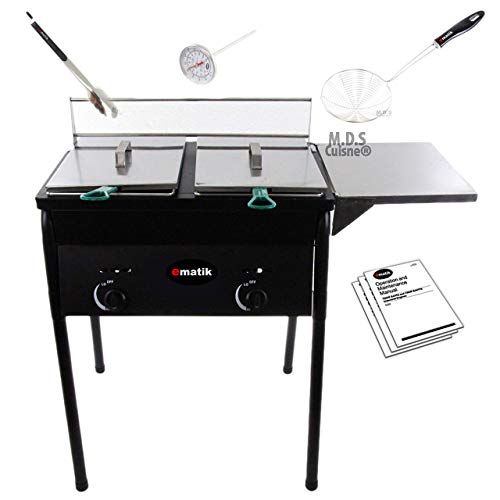 Ematik Deep Fryer Dual Wire Basket Two Double Stainless Steel 20 Qt Capacity Propane Gas Outdoor Fryer
