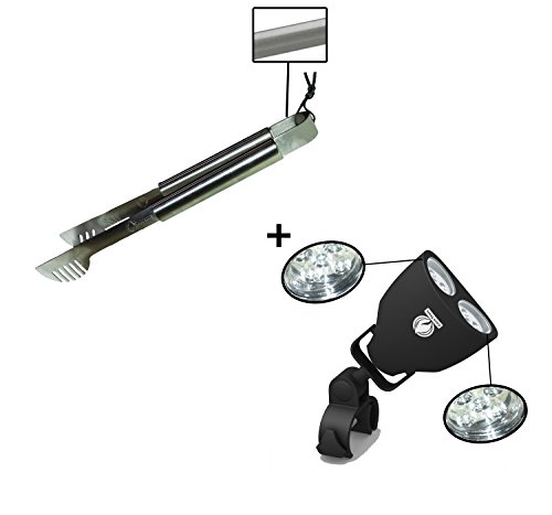 Grill Tong + Barbecue Light – LUXURIOUS GIFT BOX – Upgraded Handle Mount Fits Round & Square Bars on Weber & Big Green Egg BBQ Pits – 10 LED for Grilling at Night – Best Lighting Accessories