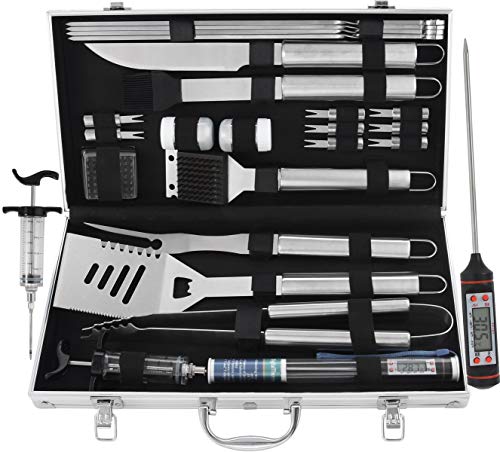 grilljoy BBQ Grill Tool Set, 24pcs Stainless Steel BBQ Accessories in Aluminum Case, Premium Complete Outdoor BBQ Utensil Gift Set for Man