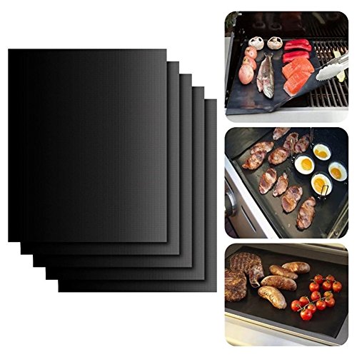 JLTPH 5 PACK BBQ Grill Mat Set of 5 Non-stick Cooking Mats Barbecue Sheets -Reusable, Heat Resistant, Dishwasher Safe Perfect for Baking on Gas, Charcoal, Oven and Electric Grills
