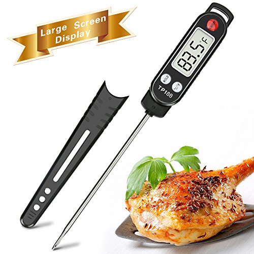 Meat Thermometer, totobay Food Thermometer Instant Read Thermometer Cooking Thermometer with Long Probe for Kitchen Cooking BBQ Grill Smoker Meat Fry Food Milk Yogurt (Black)