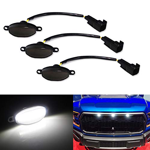 Miniclue 3pcs Smoked Lens White LED for 2010-2014 and 2017-up Ford Raptor Grille Running Lights, Powered by 45 Pieces of SMD LED Lights