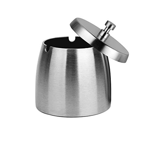 • WINDPROOF&RAINPROOF.The outdoor ashtray made from heavy stainless steel,the unique shape and have a lid help to protect against the wind and rain, it isn’t easy blow off/fall over in a windy day or a thunder storms and the lid stay on the top can keep rain out. Ashtray is great for the patio or even windy area.