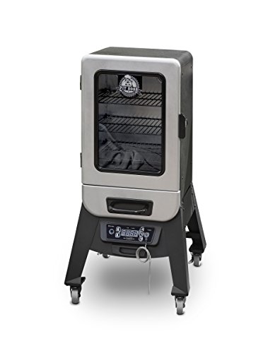PIT boss vertical digital electric smokers are bringing innovation to backyard smoking. Control your smoker temp digitally with on our push-button control panel with LED read-out. Includes a programmable meat probe for monitoring internal temp of meat & vegetables. Our redesigned Wrap-Around lower element allows users to increase smoke, but also decrease smoking temperatures. Operating temperature range is 100 400 the high setting also allows users to bake pizza, Cookies & vegetables.