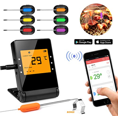 - 🍗 [Smart BBQ Meat Thermometer] – Stop standing around, boringly, to check on the temperature and free yourself from cooking,feel free to watch TV or do chores when cooking as you can get instant notifications through your phone