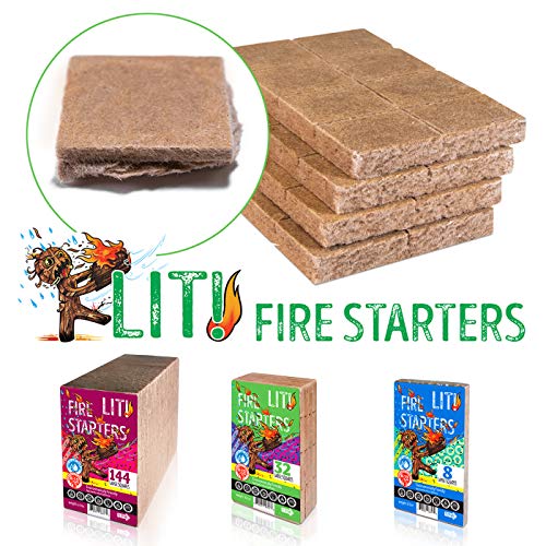 STEICO LIT Fire Starter for Lighting of Charcoal – logs – BBQ – Grill – camfire – Fireplace – fire Pit – Wood Oven and Stove – All Natural Large Squares firestarters (144)